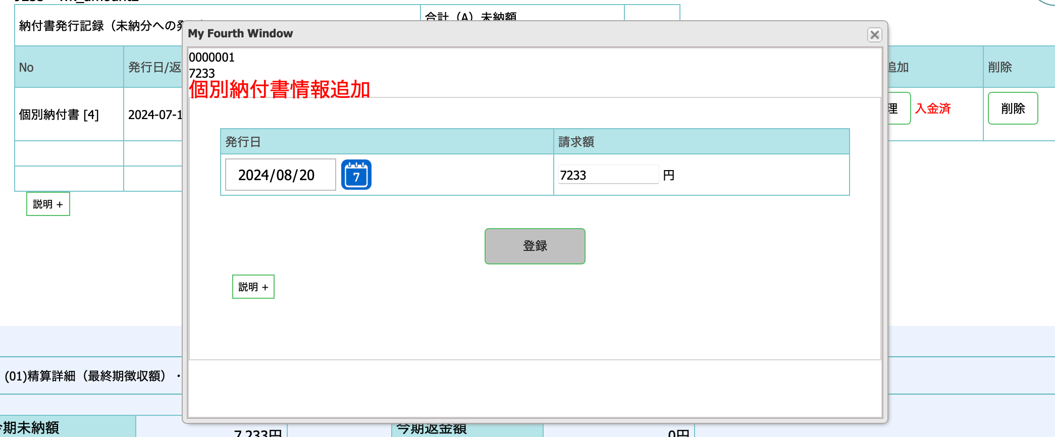 | 分割納付書を発行 | 分割情報を基に納付書を発行する。 |