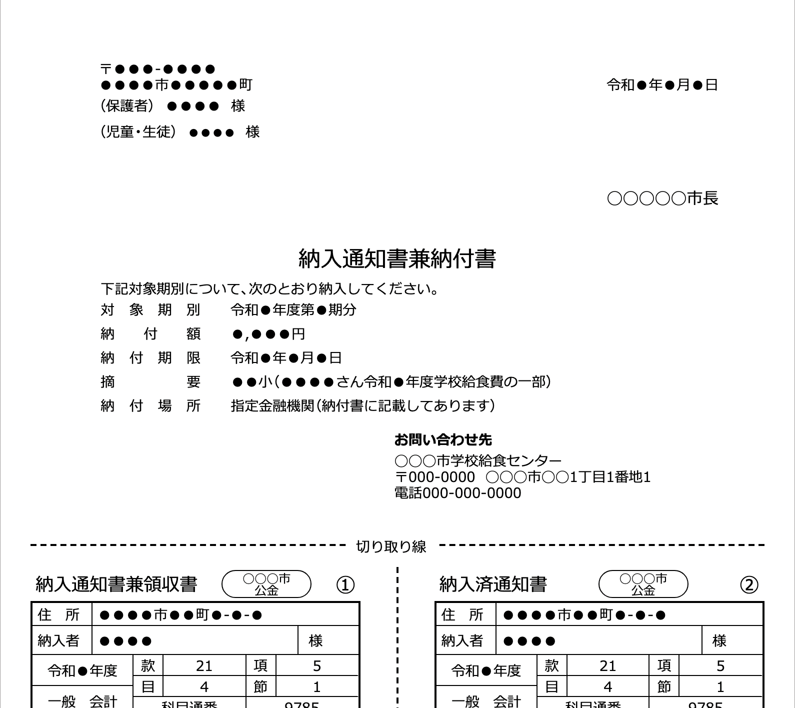 | 納入通知書兼納付書 | 納付書含む印刷 ※コンビニ決済、スマホ決済についてはご相談ください。 |
