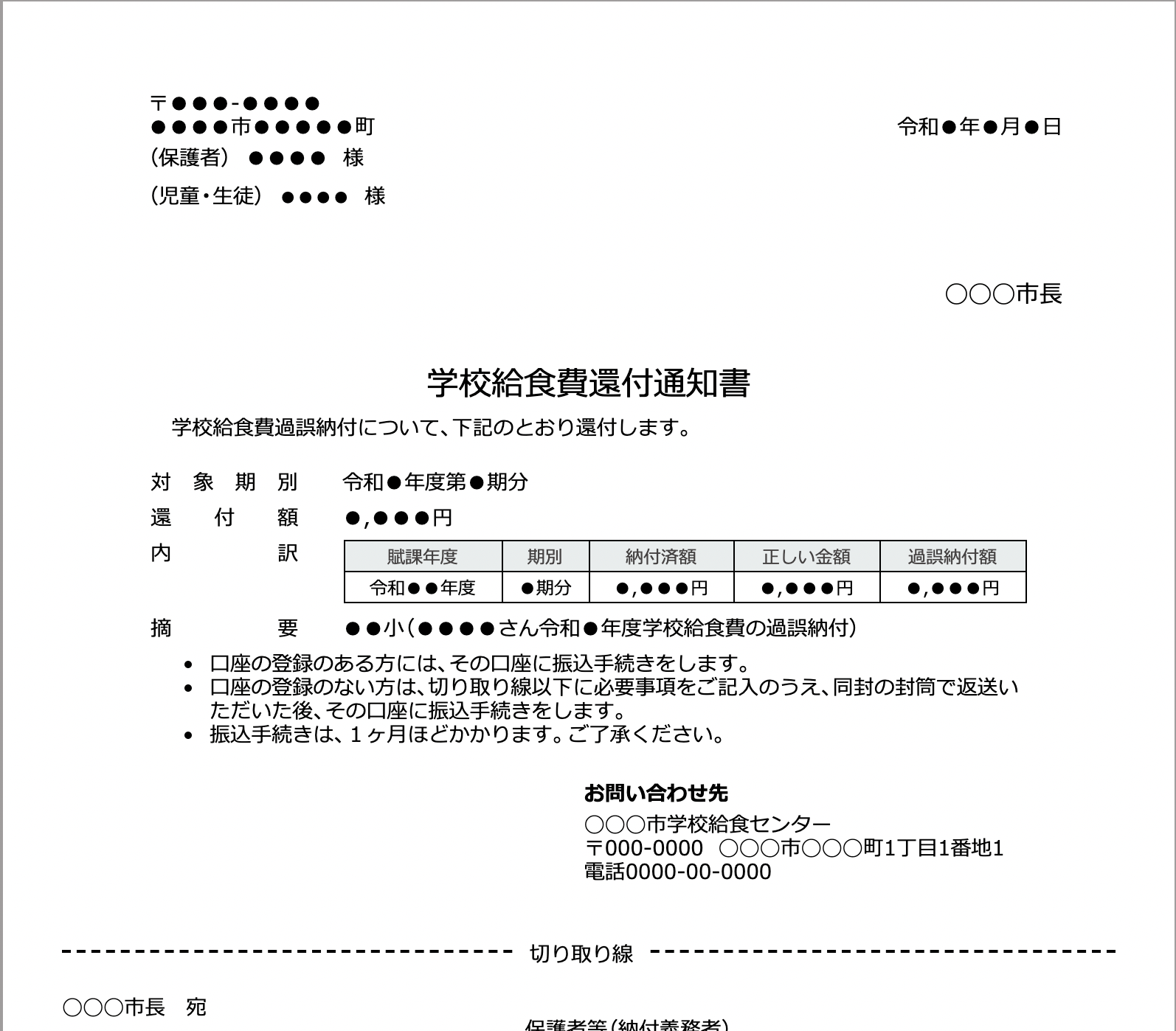 | 還付通知書 | 過誤納金があた場合の還付通知書 ※業務票(過誤納金戻出決議書)の印刷もできます。 |