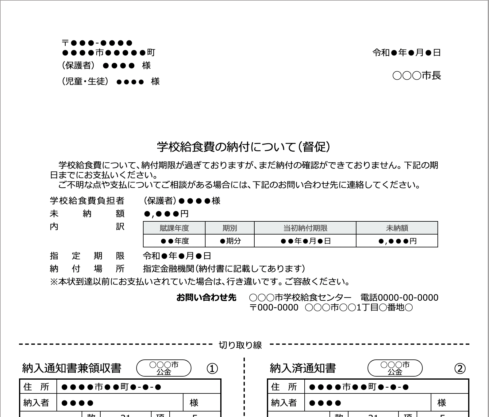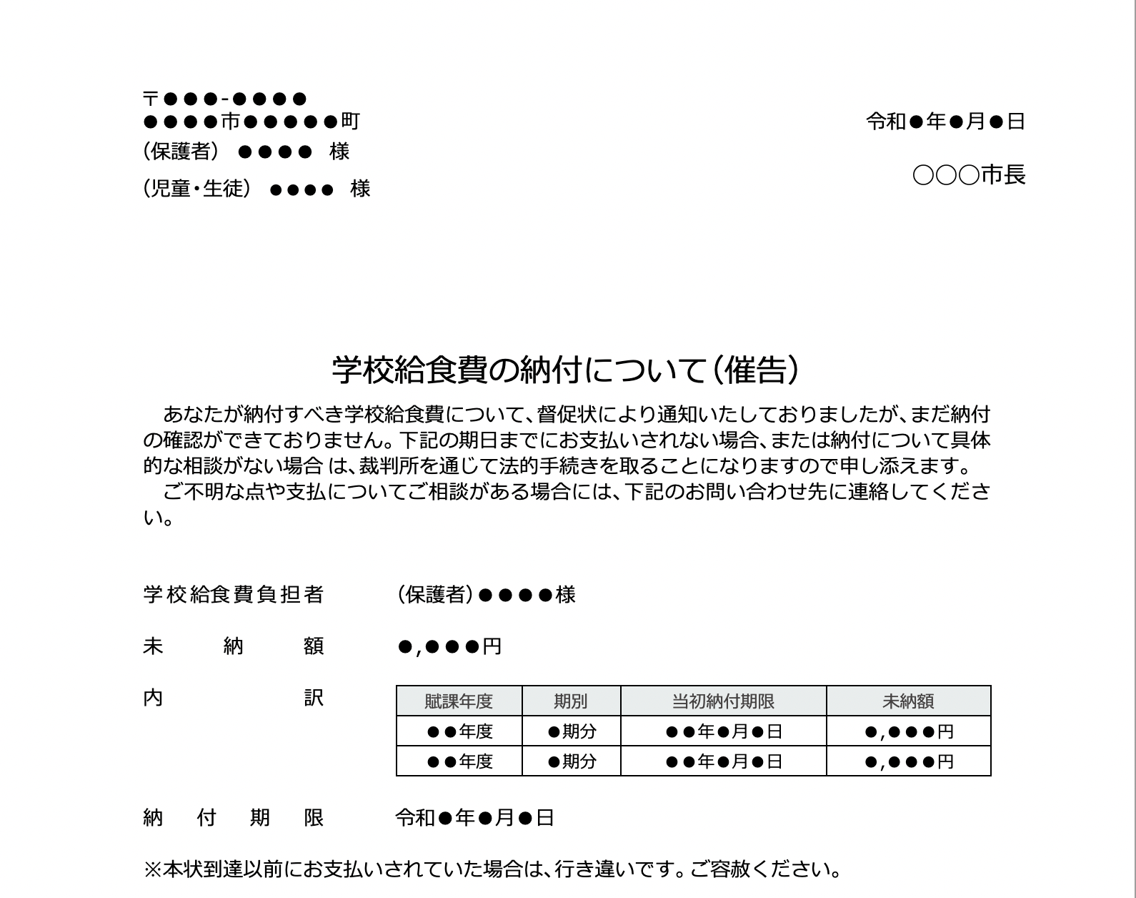 | 催告書 | 滞納者へ送付する通知書(時期、対象者は任意) |